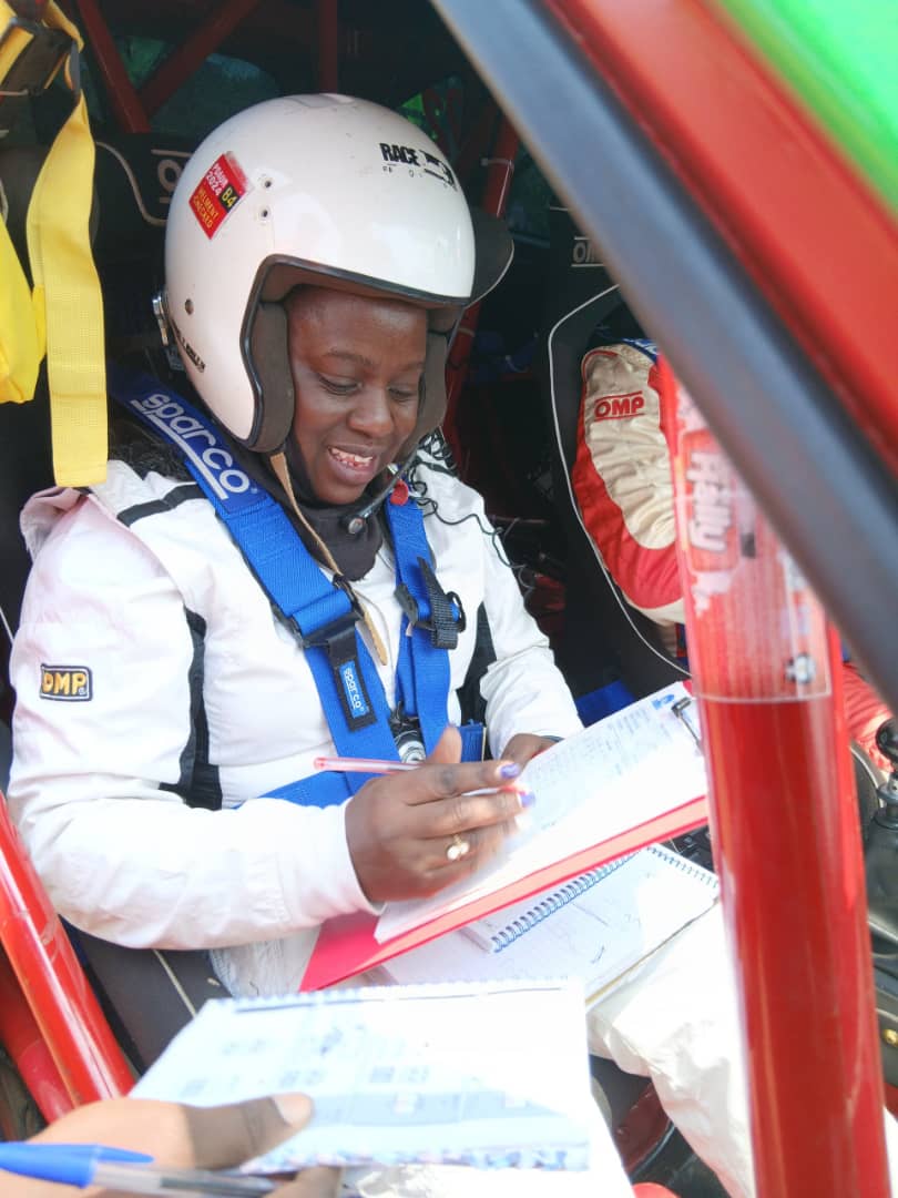 Even after that chapters closed, Mildred never slowed down. She has since partnered with various drivers, seamlessly adapting to different driving styles and maintaining her reputation as one of Uganda’s most reliable and tactical co-drivers. She is regarded as the longest – serving active female navigator in Uganda charting notes for rally drivers with remarkable consistency.